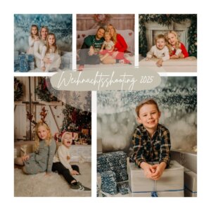 Auf den Bildern sieht man Familien mit Weihnachtshintergründen in Brandenburg Grünheide